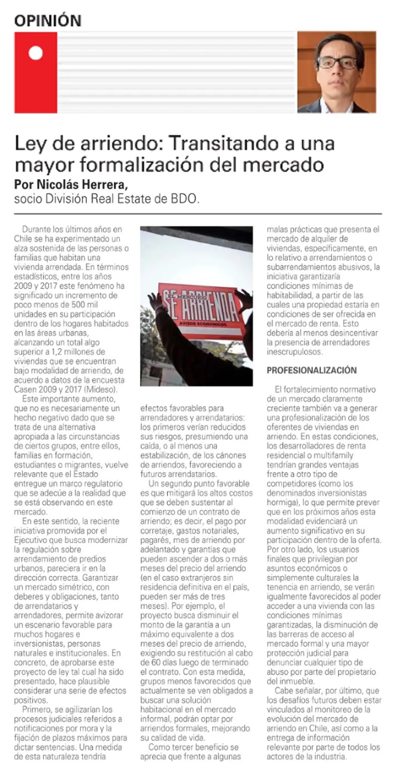 Nicolás Herrera, Socio División Real Estate de BDO | El Mercurio